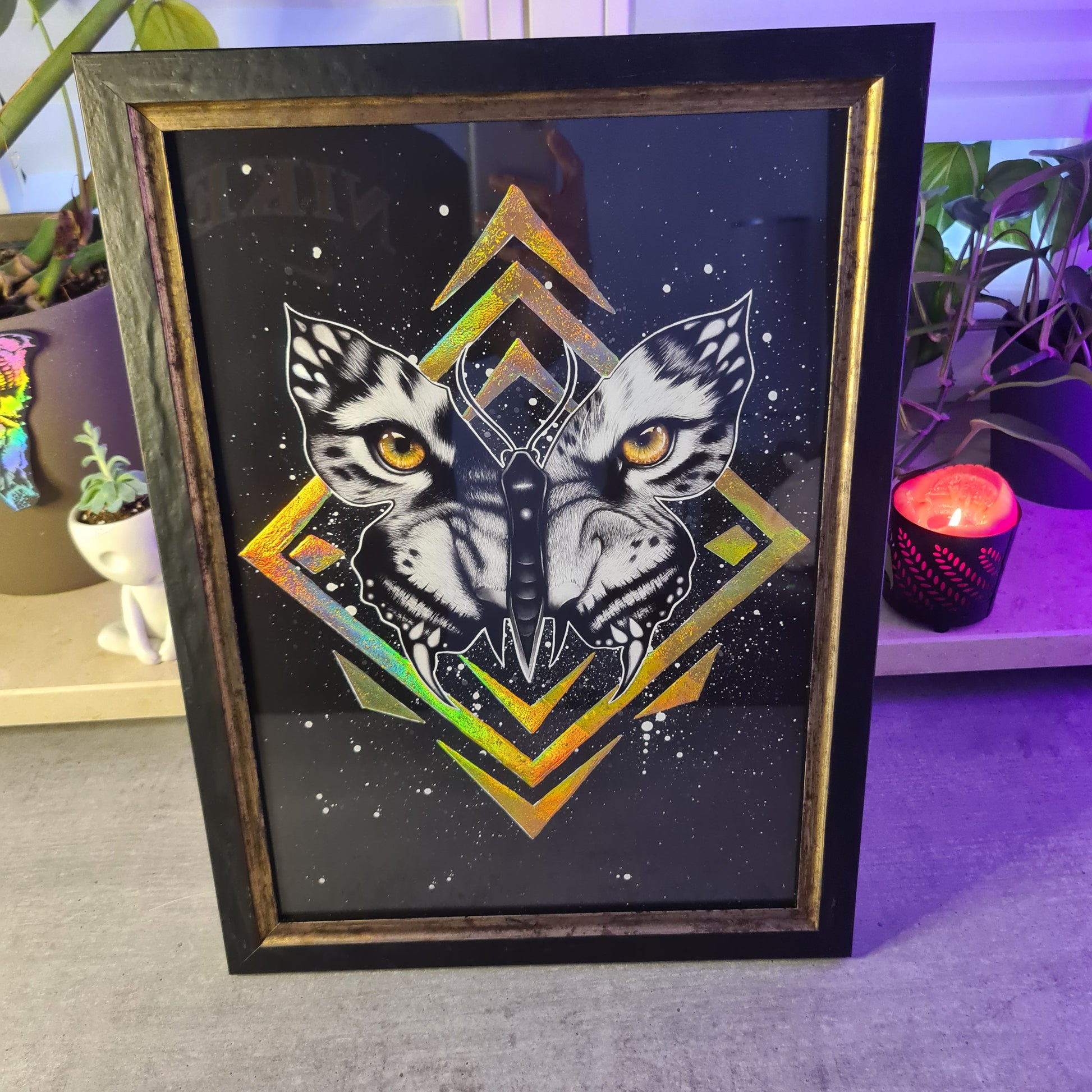 This print is hand-finished with a holographic foil. Therefore, each poster is slightly different; none is 100% perfect, but all are unique!